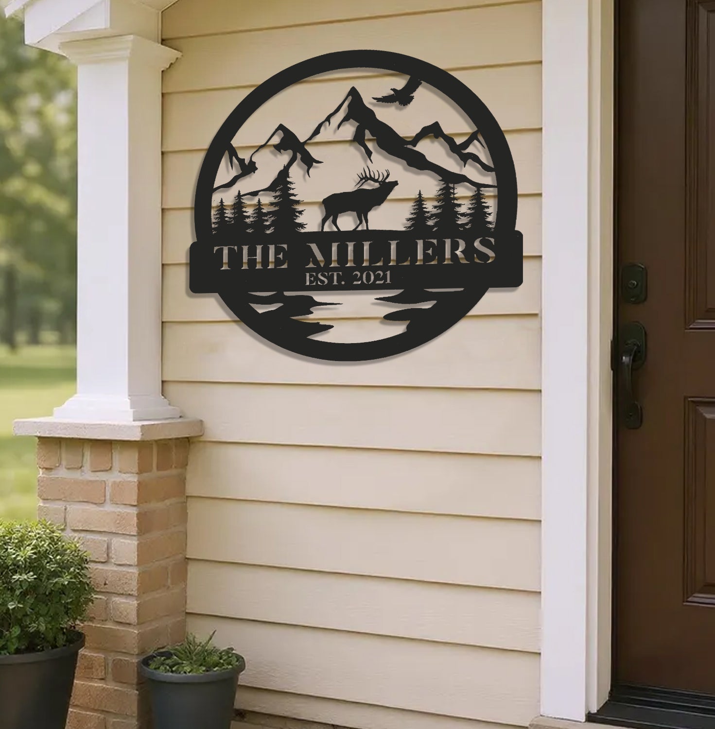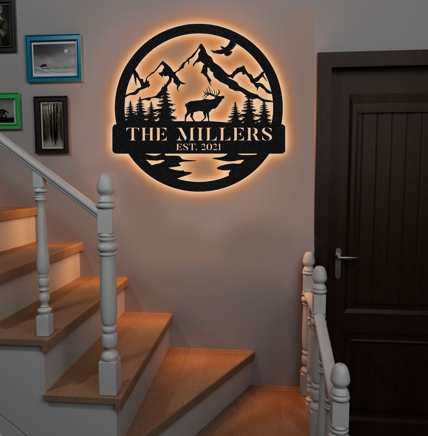 Maxcorners Personalized Mountain Elk Metal Sign WITH LED/WITHOUT LED Light Outdoor Cabin Decor Hunting Lodge Wall Decor MT0110