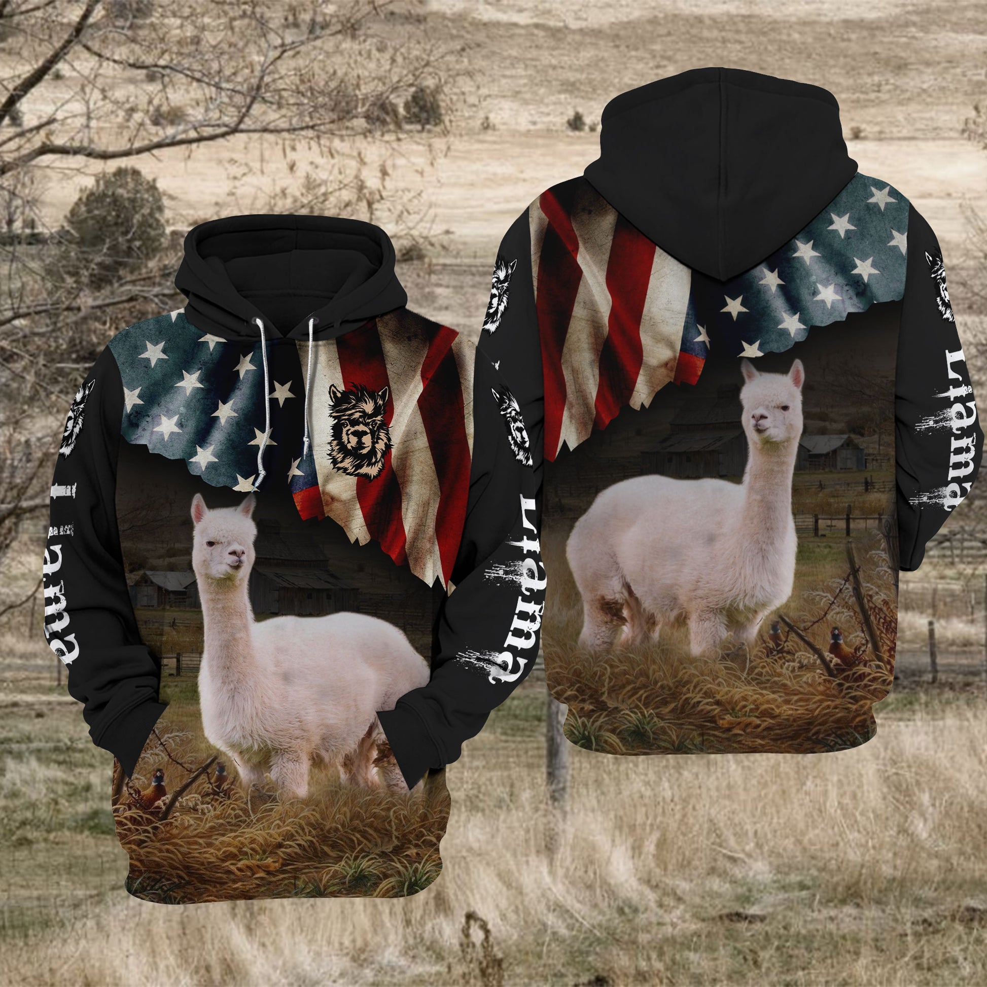 Joycorners Llama Cattle US Flag All Over Printed 3D Hoodie TT